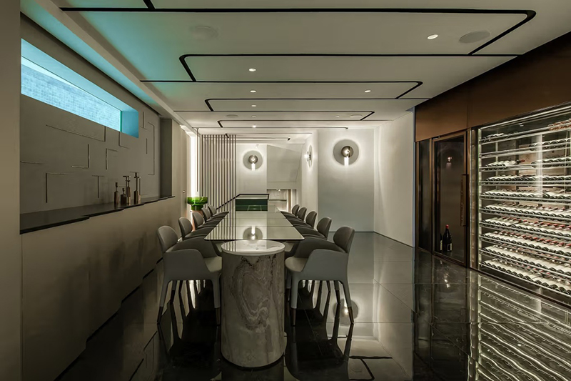 地下層設(shè)有精致的私人酒吧空間,以考究的燈光設(shè)計和高雅的家具搭配,營造出奢華而沉穩(wěn)的氛圍。酒柜墻陳列各類精選佳釀,進(jìn)一步提升空間格調(diào),使其成為理想的社交與宴客場所。